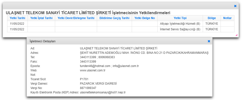 UlaşNet, Bilgi Teknolojileri ve İletişim Kurumu (BTK) tarafından 11.05.2022 tarihinde verilmiş olan İnternet Servis Sağlayıcılığı ve Altyapı İşletmeciliği lisanslarının yetkisi kapsamında hizmet vermektedir.